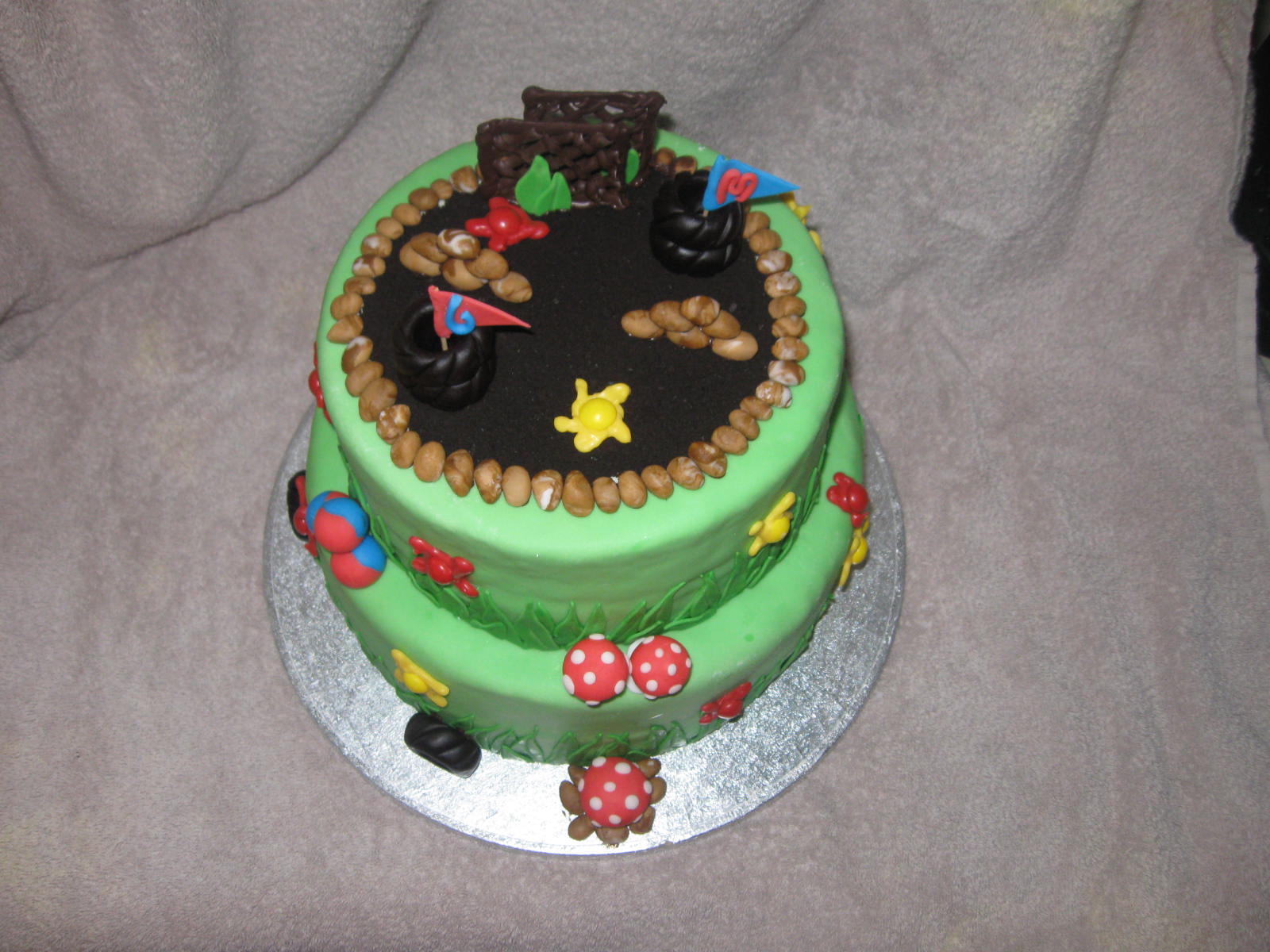 Wow it has been a long time since I posted a cake that I did. I made one last month but was not happy with it at all so I didn't post it. This cake was for Matt B and Jason D. It is a paintball themed cake and the mushrooms are inspired by Super Mario. I thought they were fitting since they like Super Mario and they are just in the grass. I made everything from fondant including all of the rocks. The paint splatters are chocolate with a skittle in the middle. I had a great time making this cake and is by far my favorite. I think I will put my cake decorating up for awhile and I will see you all next year, this was hard for me to make to roll out the fondant at 6 months pregnant, so till Tyler's birthday I shall retire, lol. Well that is the plan anyway we shall see.